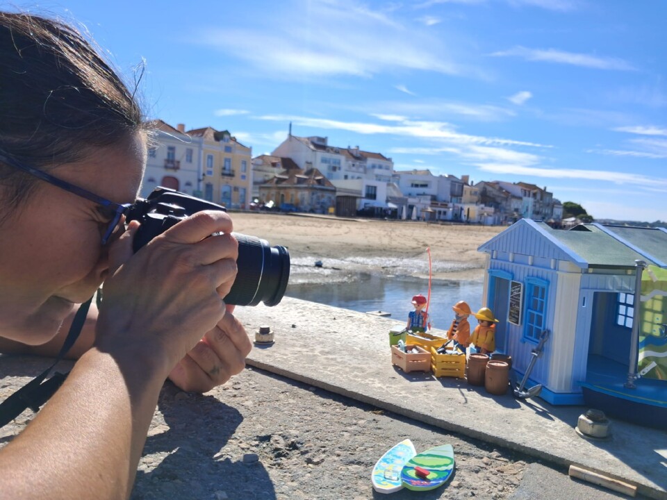 Estava um dia de Outono que mais parecia Verão. O azul do céu estava radiante e só foi pena a maré não estar mais cheia, para a água ter mais impacto na fotografia da história da loja do cais!